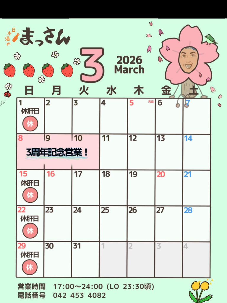 3/7日に3周年ということで!今月は「3周年記念営業」があります!